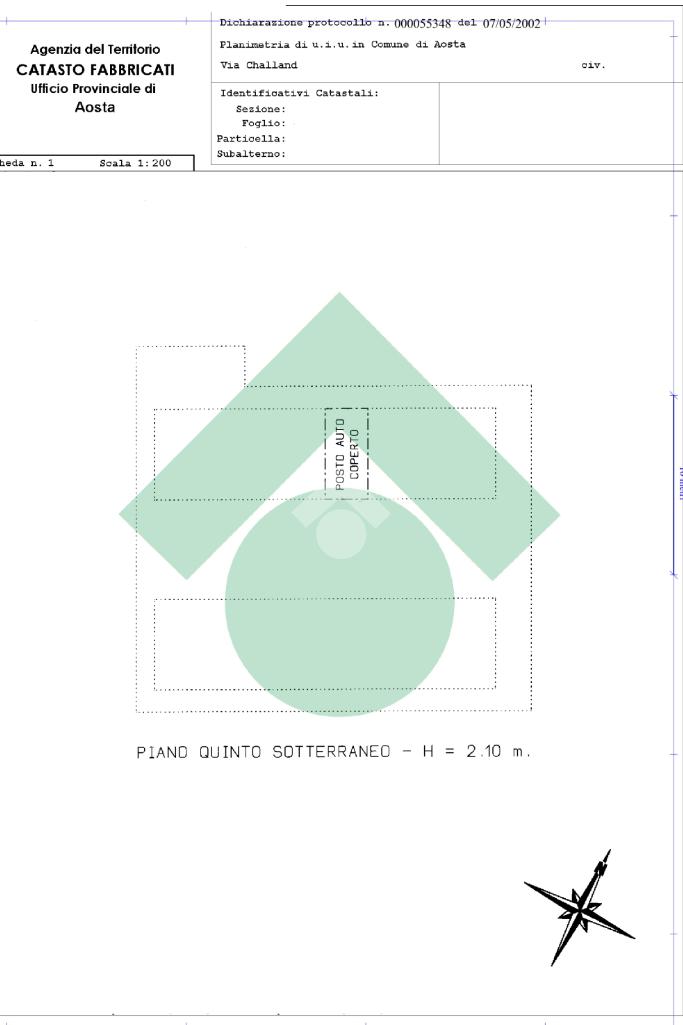 Aosta, Via Festaz. A pochi passi dal centro pedonale di Aosta ed in prossimità del palazzo regionale, posto auto coperto al piano interrato all'interno dell' Autosilo Challand. Il parcheggio dell'auto avviene tramite i trasloelevatori, dove l’auto viene prelavata in modo completamente automatico dal locale di entrata e depositata nell’area di parcheggio. L' auto viene parcheggiata in modo da ottimizzare i tempi di prelievo, diminuire i costi di energia elettrica e ridurre i movimenti meccanici del trasloelevatore; pertanto l' auto viene depositata negli stalli più vicini al locale di deposito. Nel caso si liberi un posto più vicino all’uscita, esso verrà occupato dalla prima auto in arrivo.