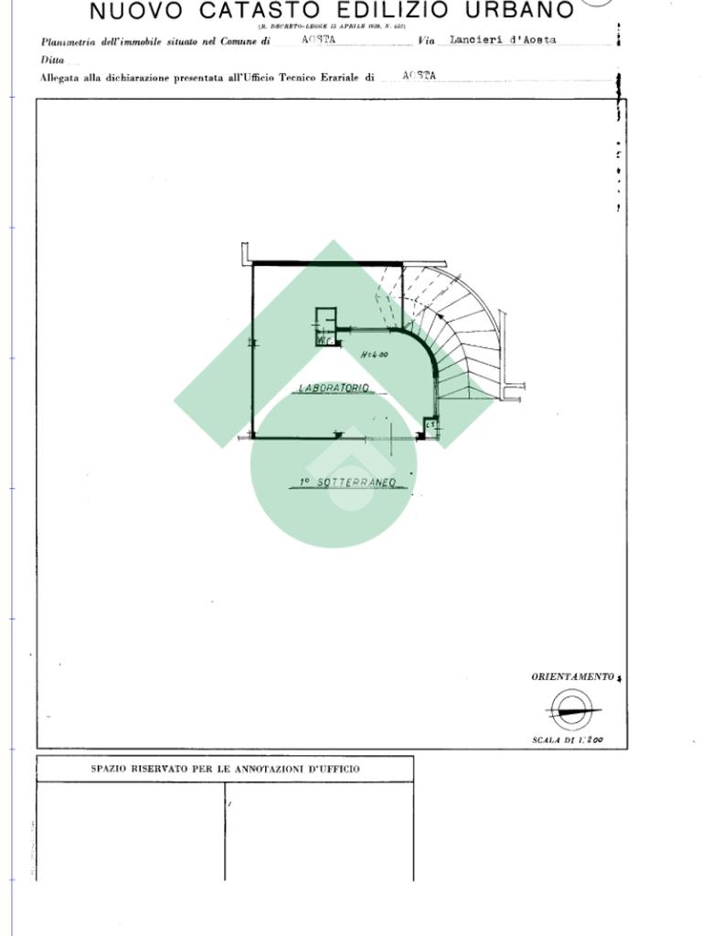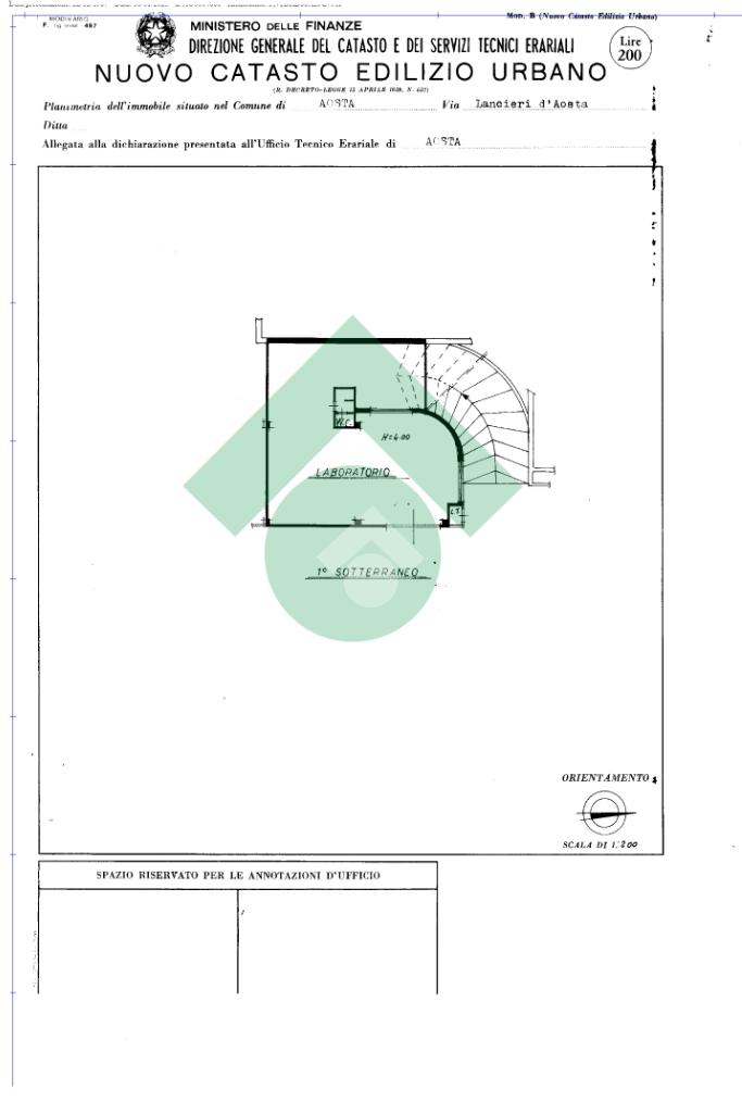Aosta-Nella zona commerciale, artigianale e residenziale di Corso Lancieri, laboratorio finestrato al piano semi-interrato con comodo accesso da rampa coperta.