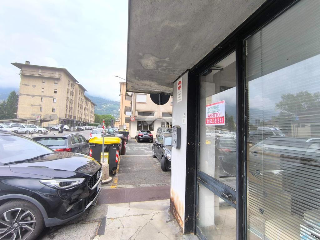 Aosta, via Monte Emilius. Nella zona centrale di Aosta ed in prossimità di altre attività commerciali, negozio angolare con doppia vetrina fronte strada che consente una buona visibilità agli spazi interni.