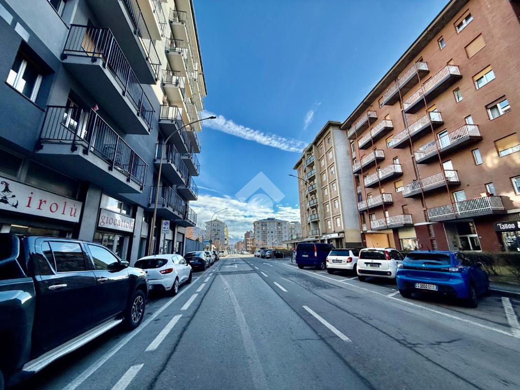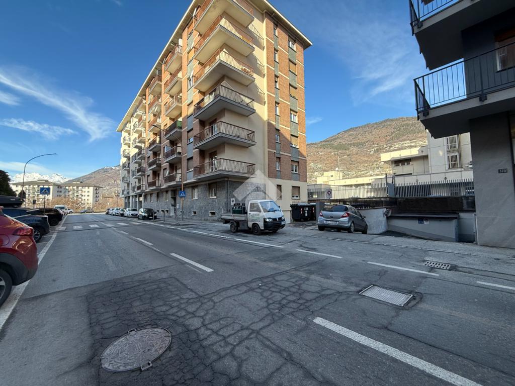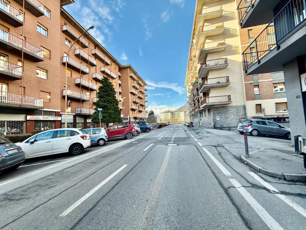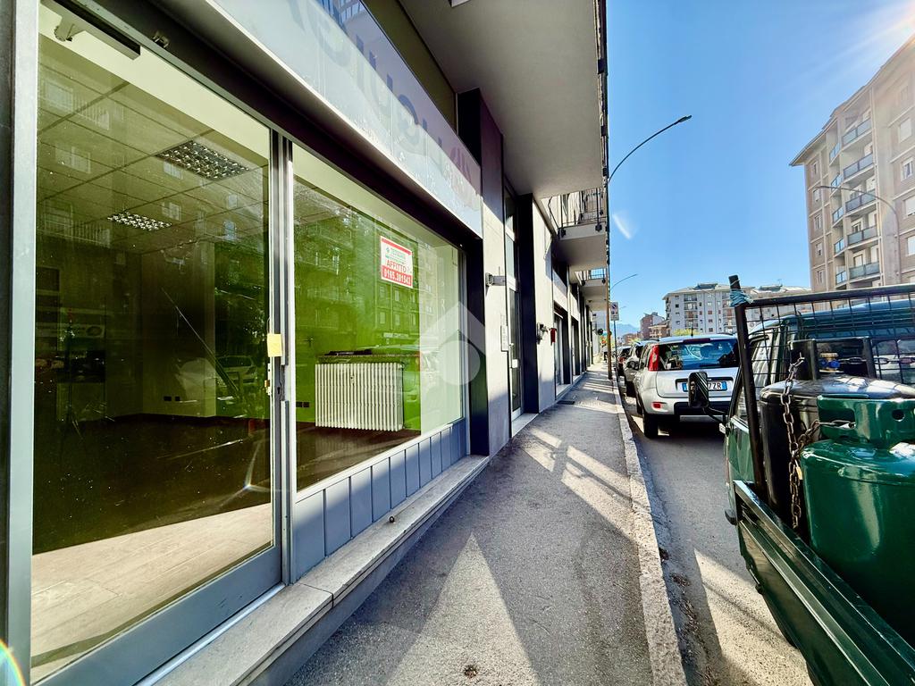 Aosta, via Chambery. In zona ad alto flusso veicolare negozio al piano terra con una vetrina fronte strada che dona una buona luminosità e visibilità agli spazi interni.
