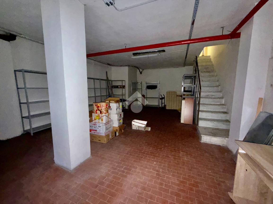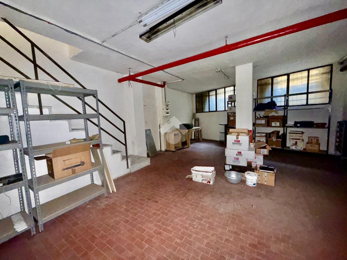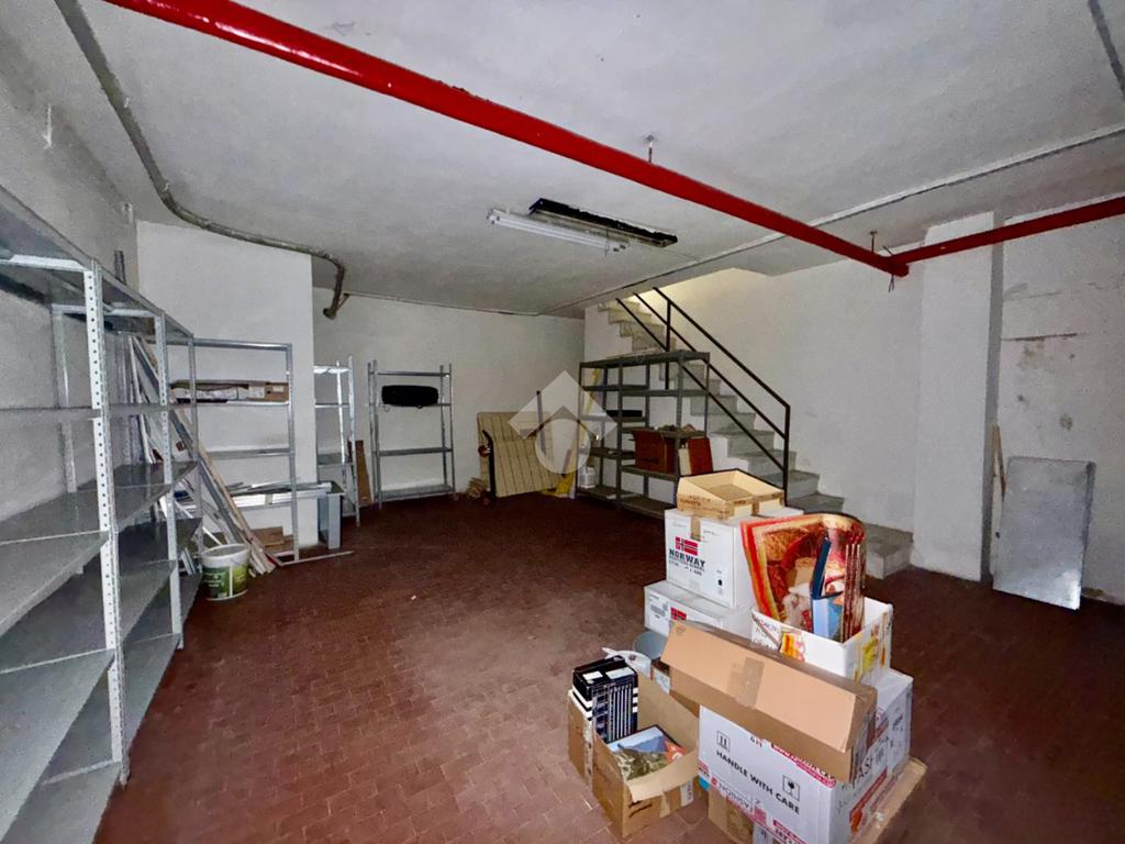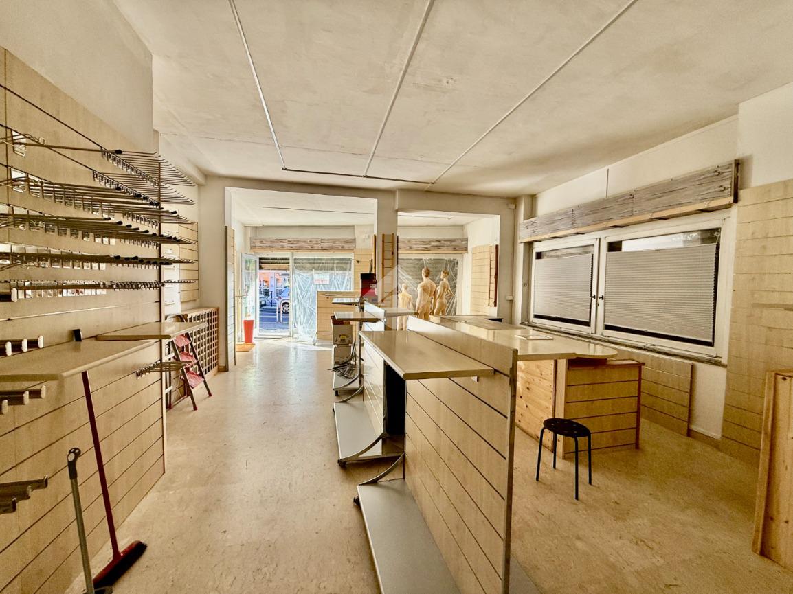L'immobile di circa 128,00 mq è disposto su due livelli con un ingresso su un ampio vano open space, un retro ed un servizio igienico con antibagno al piano terra ed un ampio magazzino al piano interrato collegato al negozio da una scala interna.