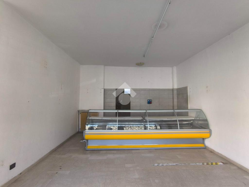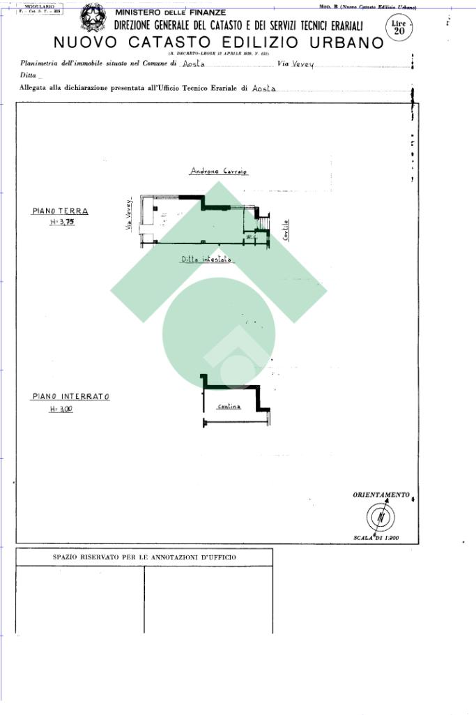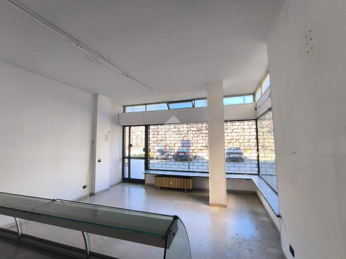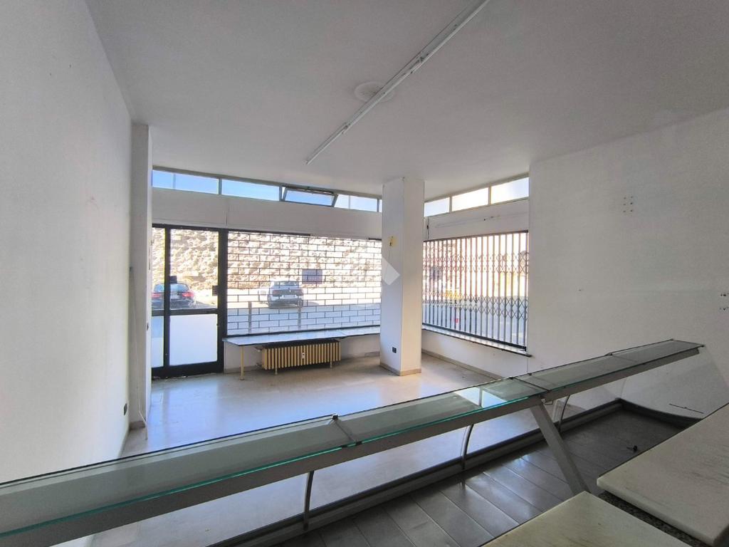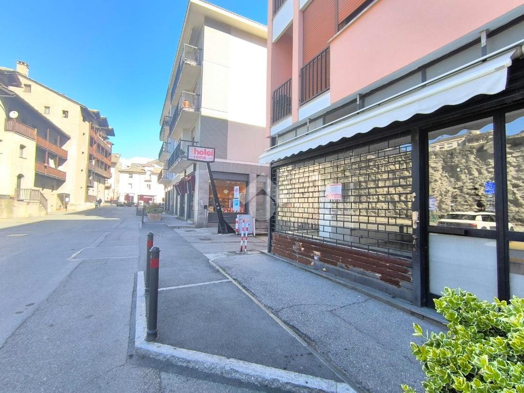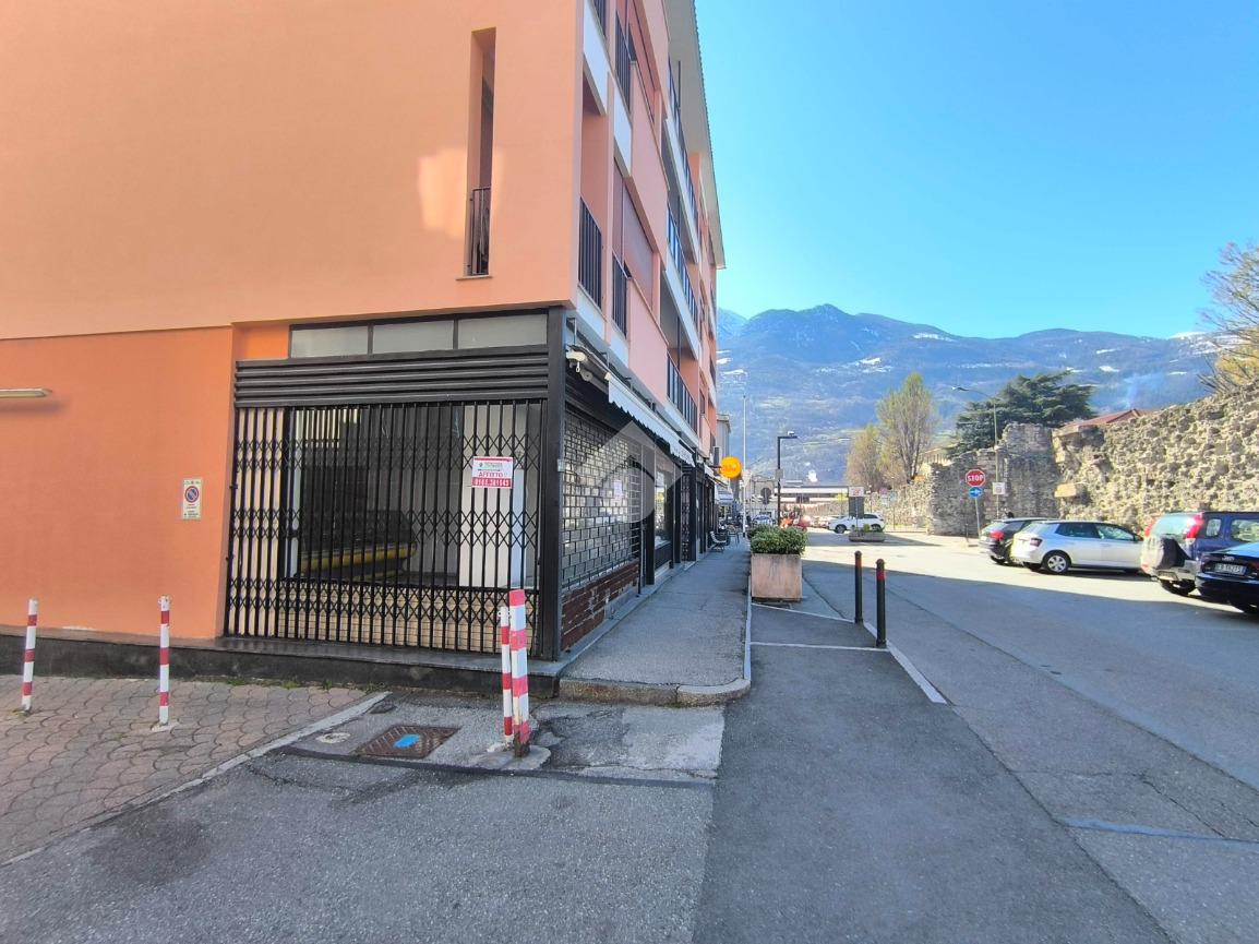 Aosta, Via Vevey. Nella zona centrale di Aosta, in prossimità delle Porte Pretoriane e via Torino, negozio angolare con doppia vetrina fronte strada che donano una buona luminosità interna e consentono una buona esposizione agli spazi interni. Il locale ha una metratura di circa 60,00 mq ed è disposto su un unico livello con un ingresso su un ampio vano, un retro con cella frigorifera ed un servizio igienico.