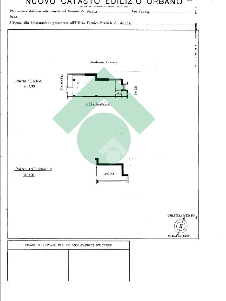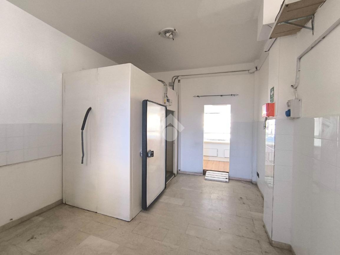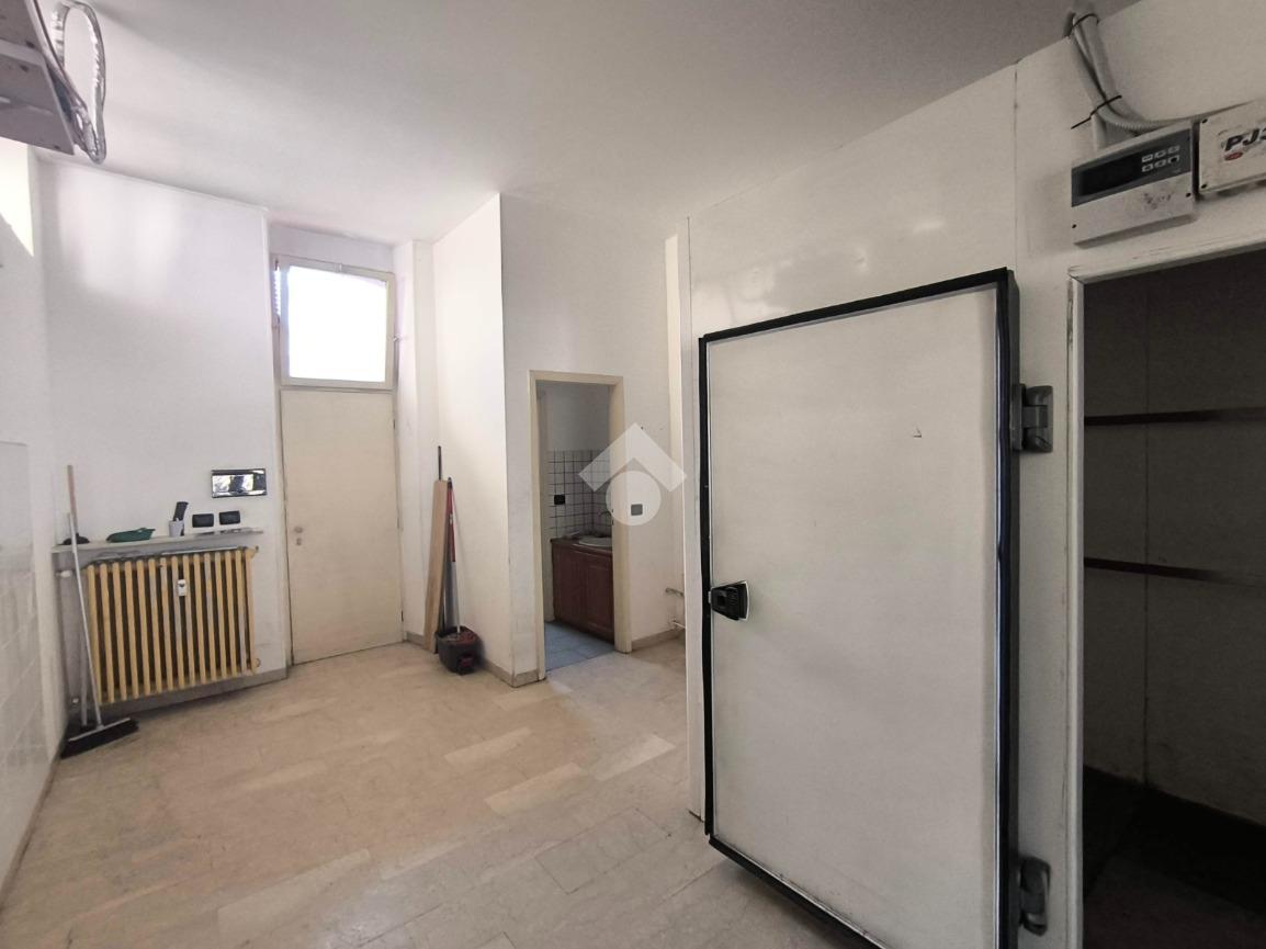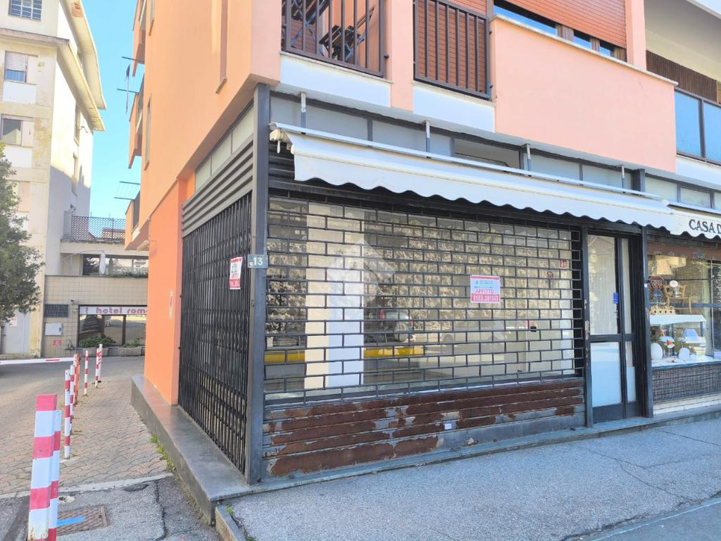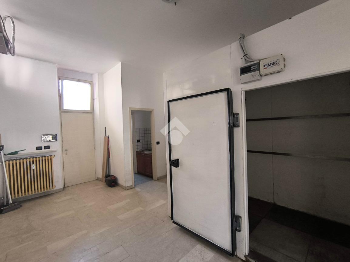 Aosta, Via Vevey. Nella zona centrale di Aosta, in prossimità delle Porte Pretoriane e via Torino, negozio angolare con doppia vetrina fronte strada che donano una buona luminosità interna e consentono una buona esposizione agli spazi interni. Il locale ha una metratura di circa 60,00 mq ed è disposto su un unico livello con un ingresso su un ampio vano, un retro con cella frigorifera ed un servizio igienico.