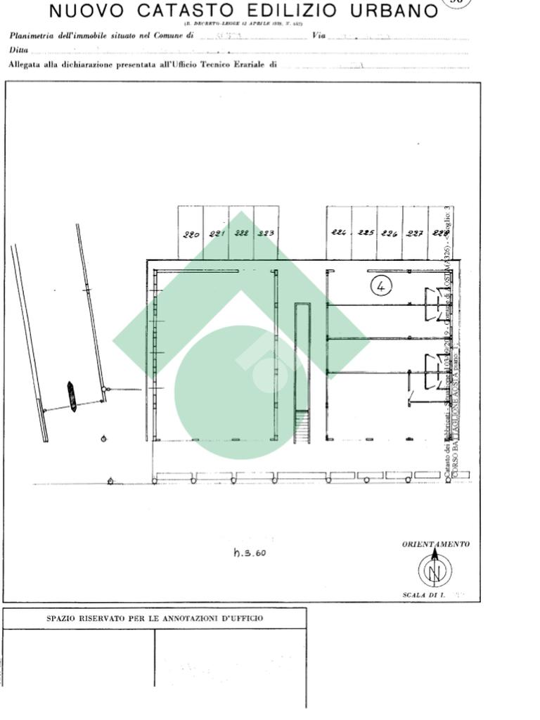 Il locale ha una metratura di circa 40 mq con un ingresso su un unico vano ed un servizio igienico.