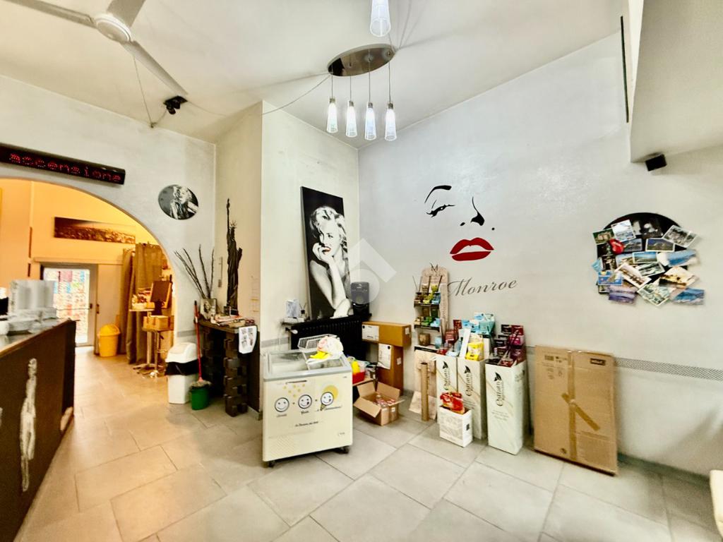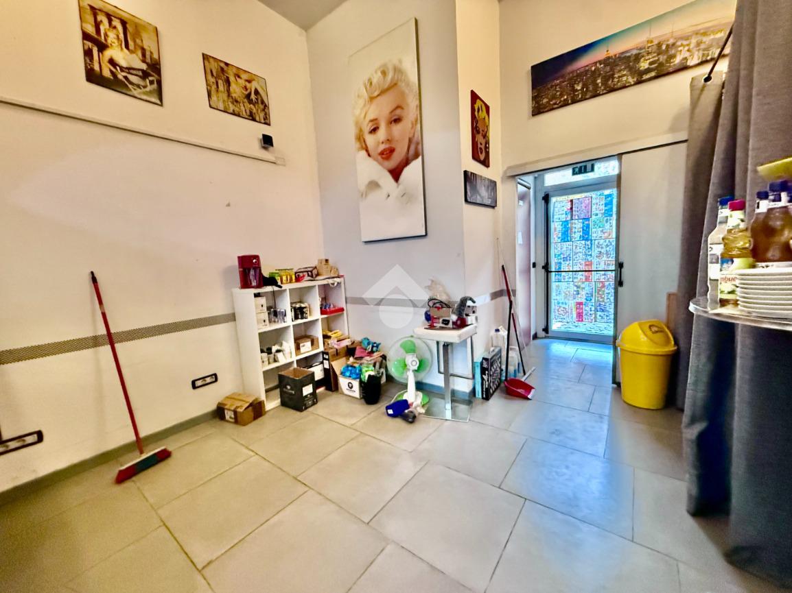 Internamente ha una metratura di circa 56,00 mq con un ingresso su una zona vendita, un retro ed un servizio igienico a norma per i disabili.