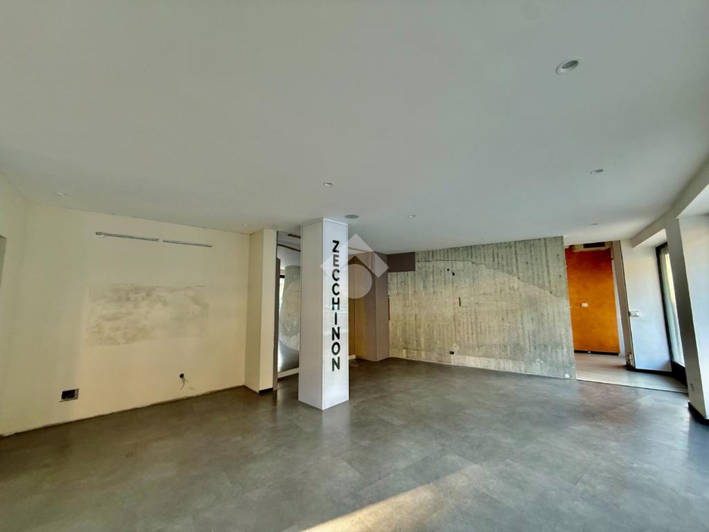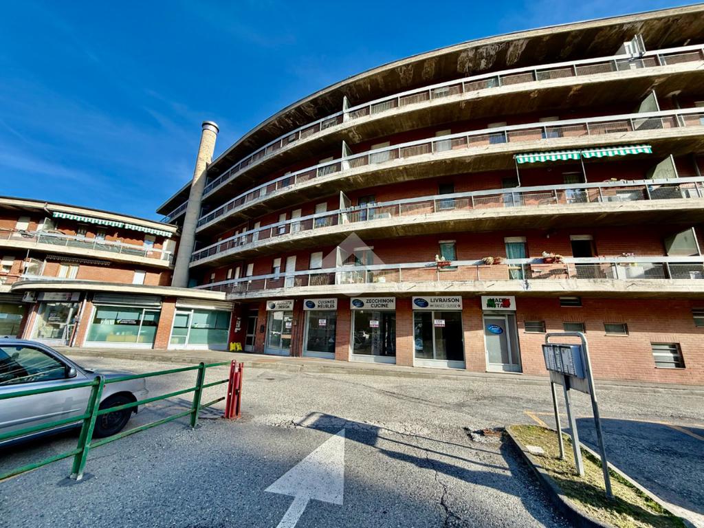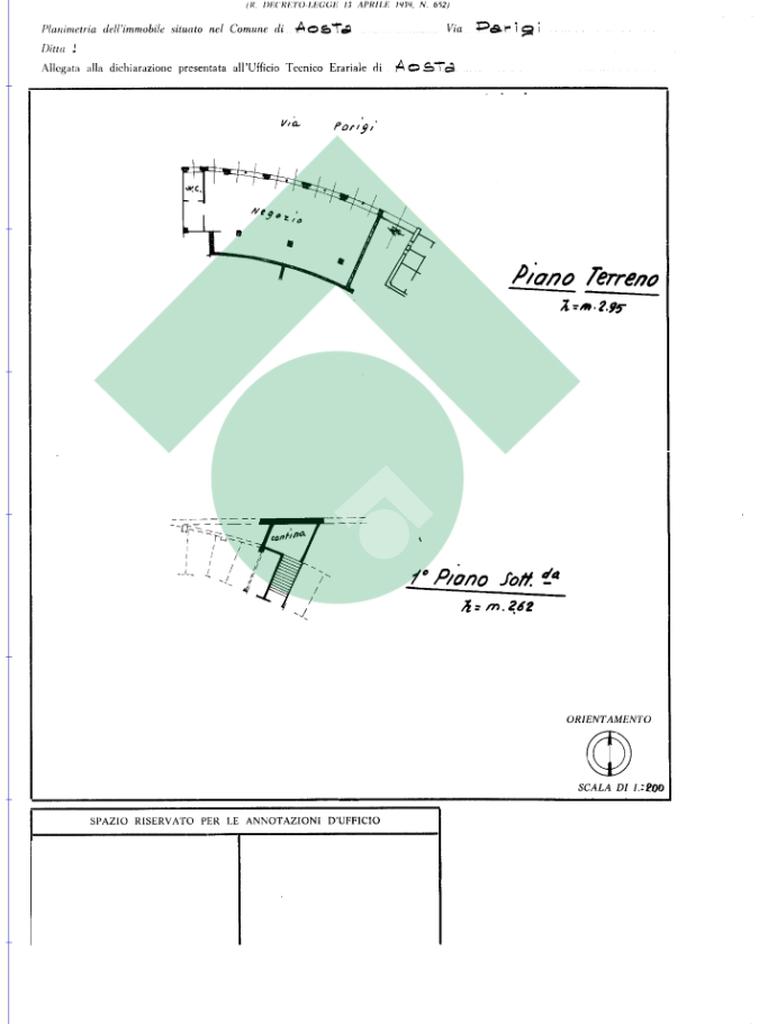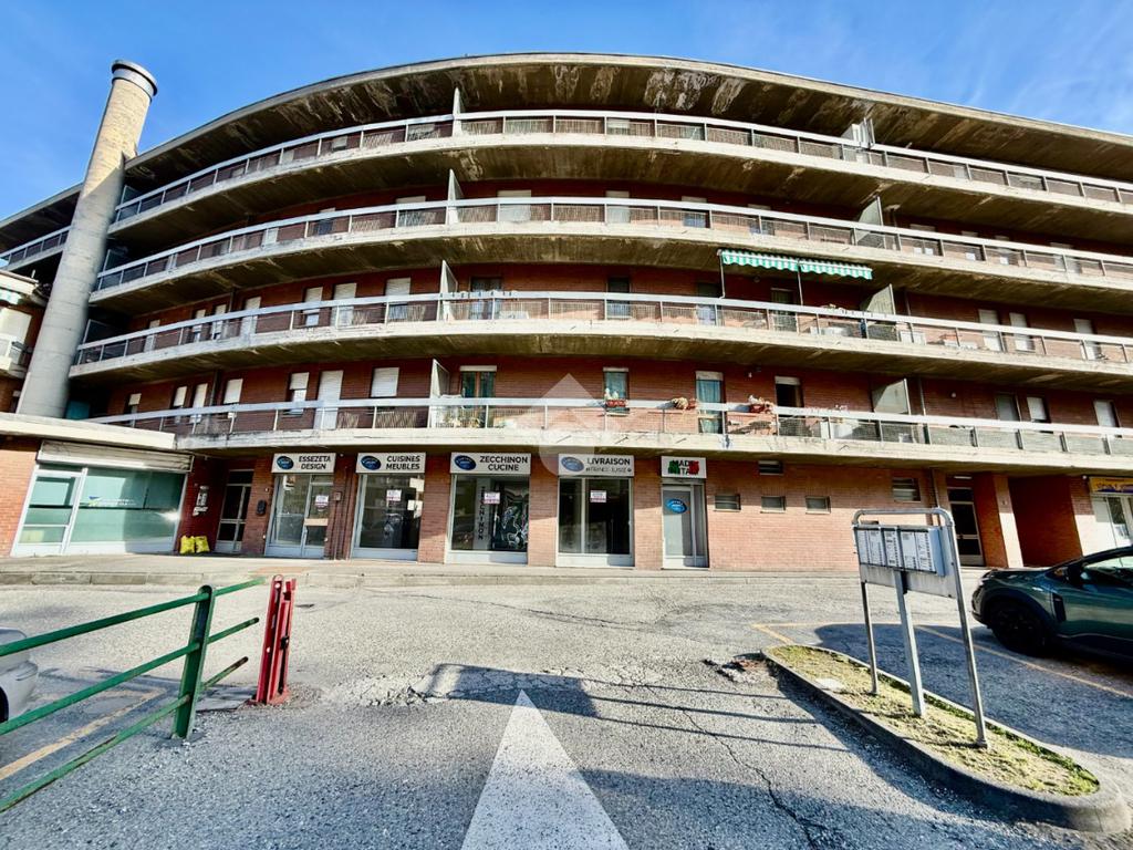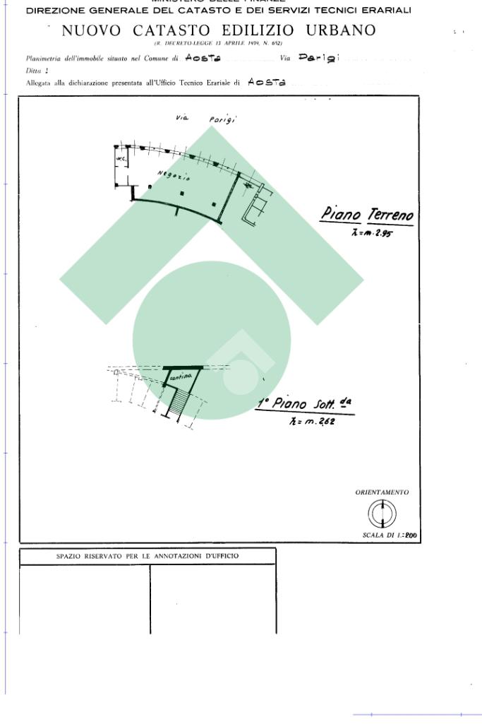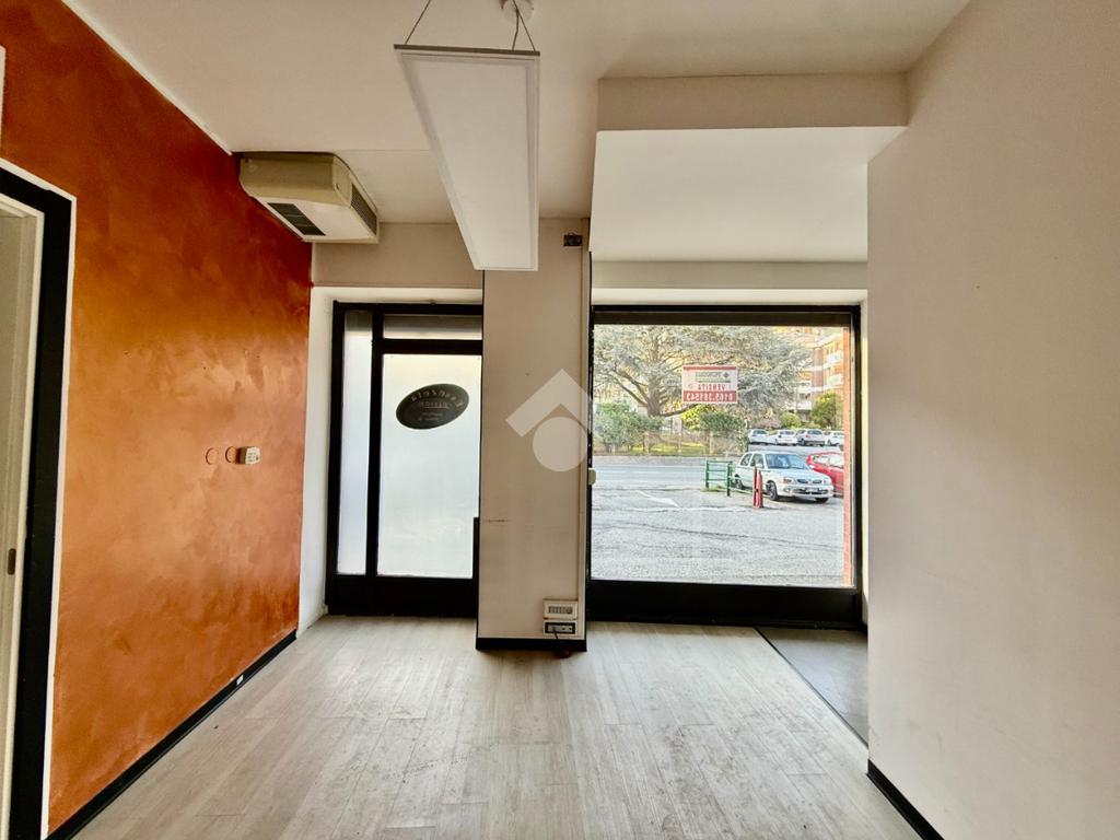Aosta, via Parigi. In zona ad alto flusso veicolare negozio al piano terra privo di barriere architettoniche con cinque vetrine fronte statale che donano una buona luminosità e visibilità agli spazi interni.