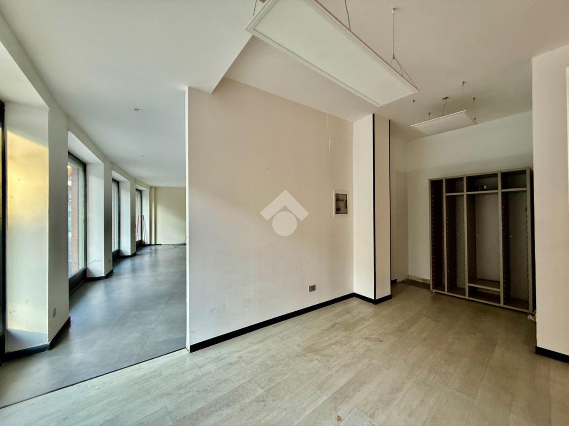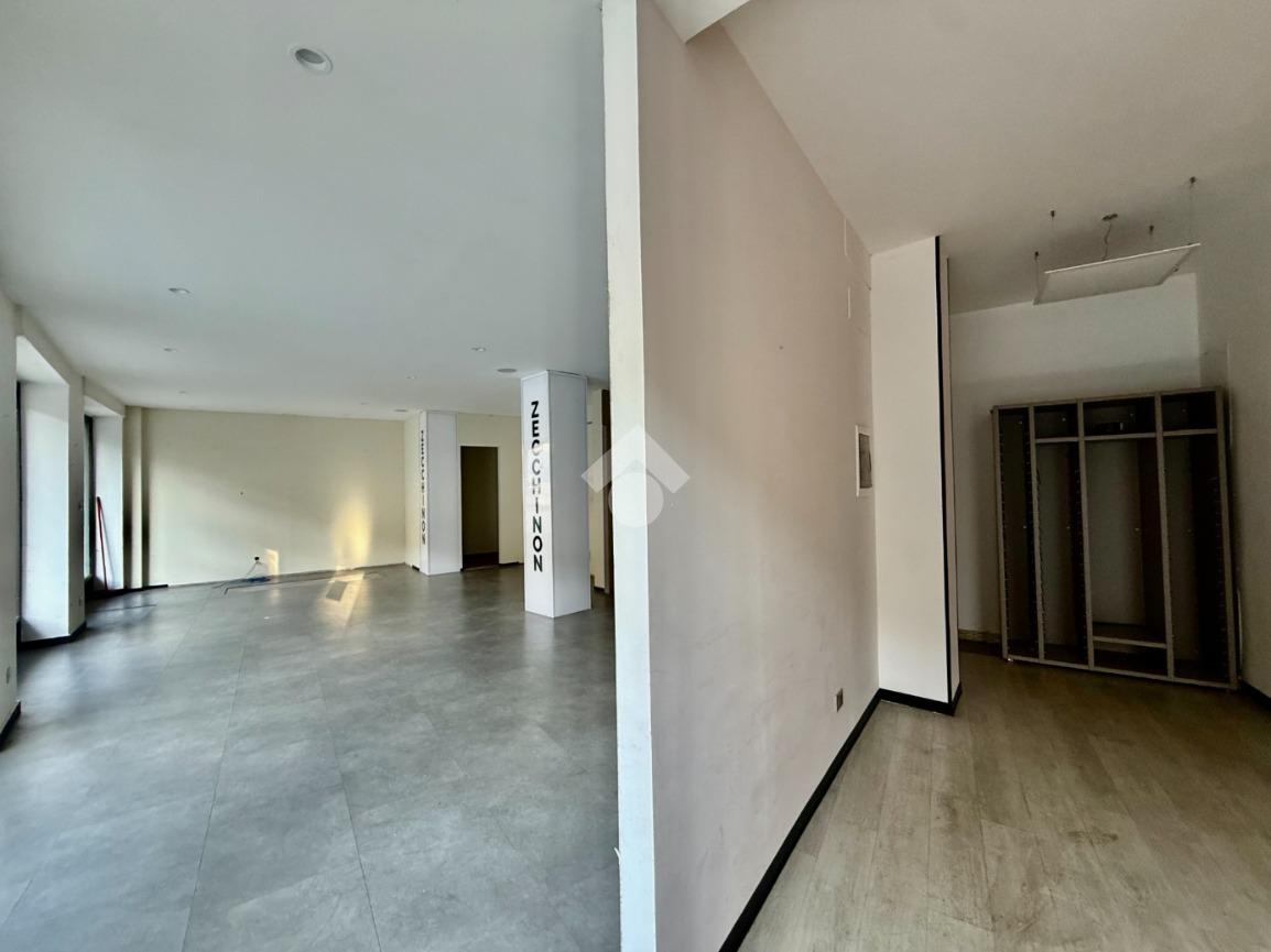 La metratura del locale è di circa 80,00 mq con un ingresso su unico vano open space, un servizio igienico con antibagno ed un'ampia cantina di circa 10,00 mq al piano interrato collegato al negozio da una scala interna.