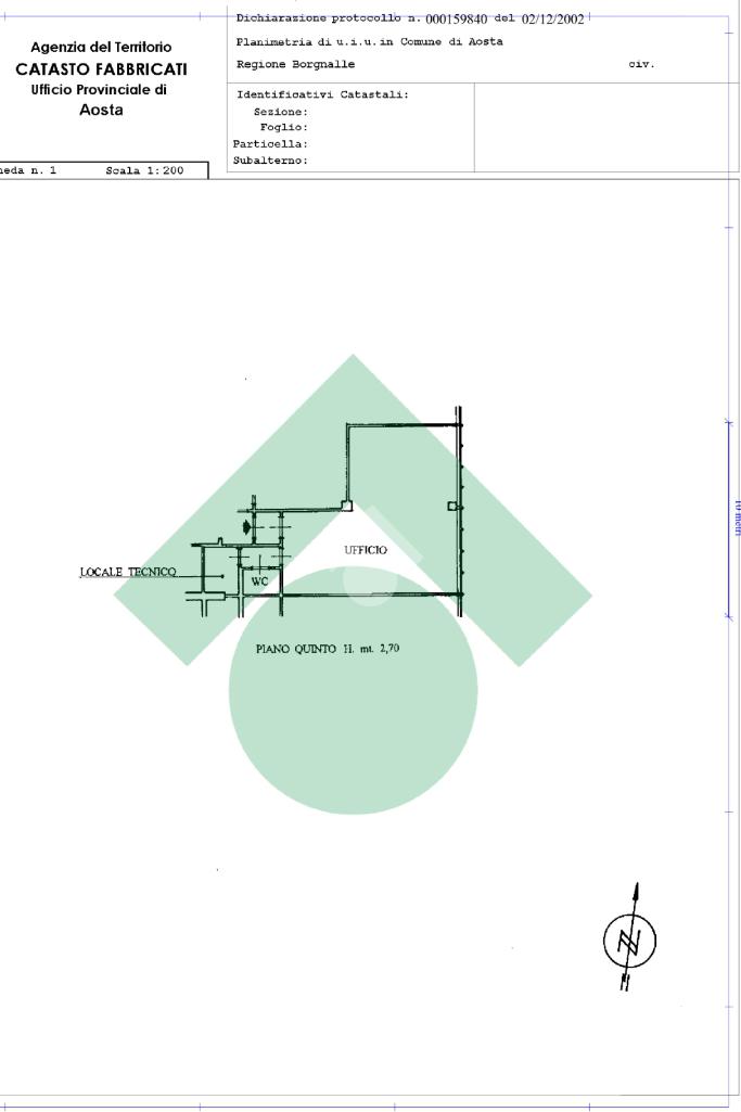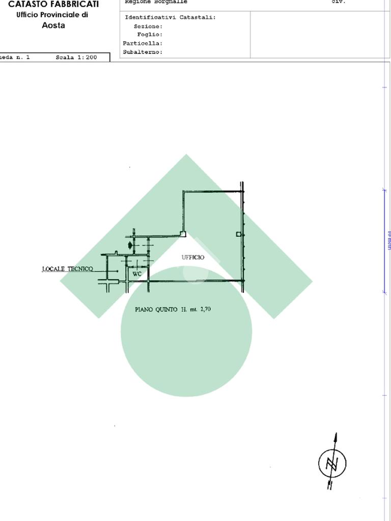 Aosta-Regione Borgnalle. Nel centro direzionale di Aosta, ufficio di circa 77,00 mq al quinto piano con doppio ascensore.