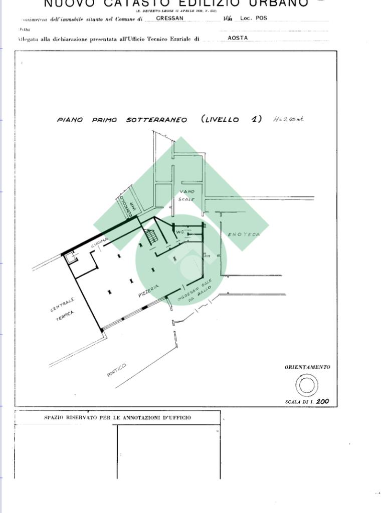 La metratura è di circa 187,00 mq con un ingresso su un’ ampia sala con vista bancone e forno a legna, un locale adibito a cucina con canna fumaria e doppio servizio igienico.