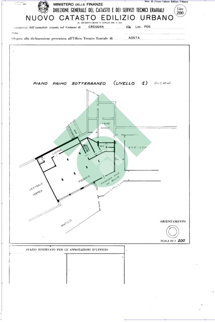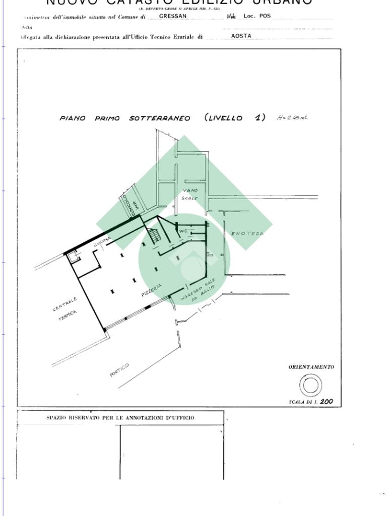 La metratura è di circa 187,00 mq con un ingresso su un’ ampia sala con vista bancone e forno a legna, un locale adibito a cucina con canna fumaria e doppio servizio igienico.