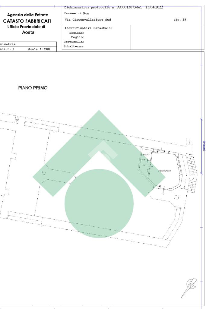 Nus-Lungo la circonvallazione sud di Nus nel centro polifunzionale Voyat, laboratorio-ufficio al primo piano con ascensore privo di barriere architettoniche.