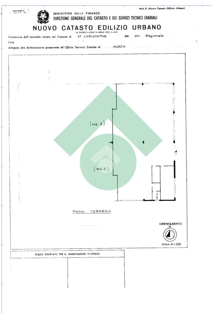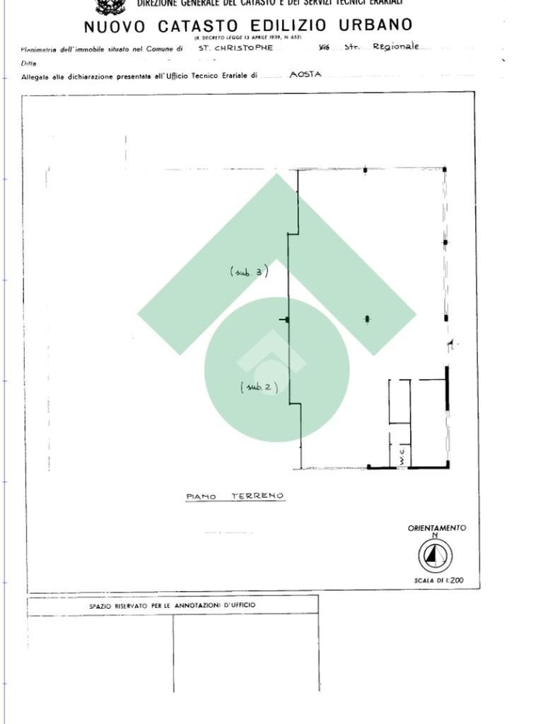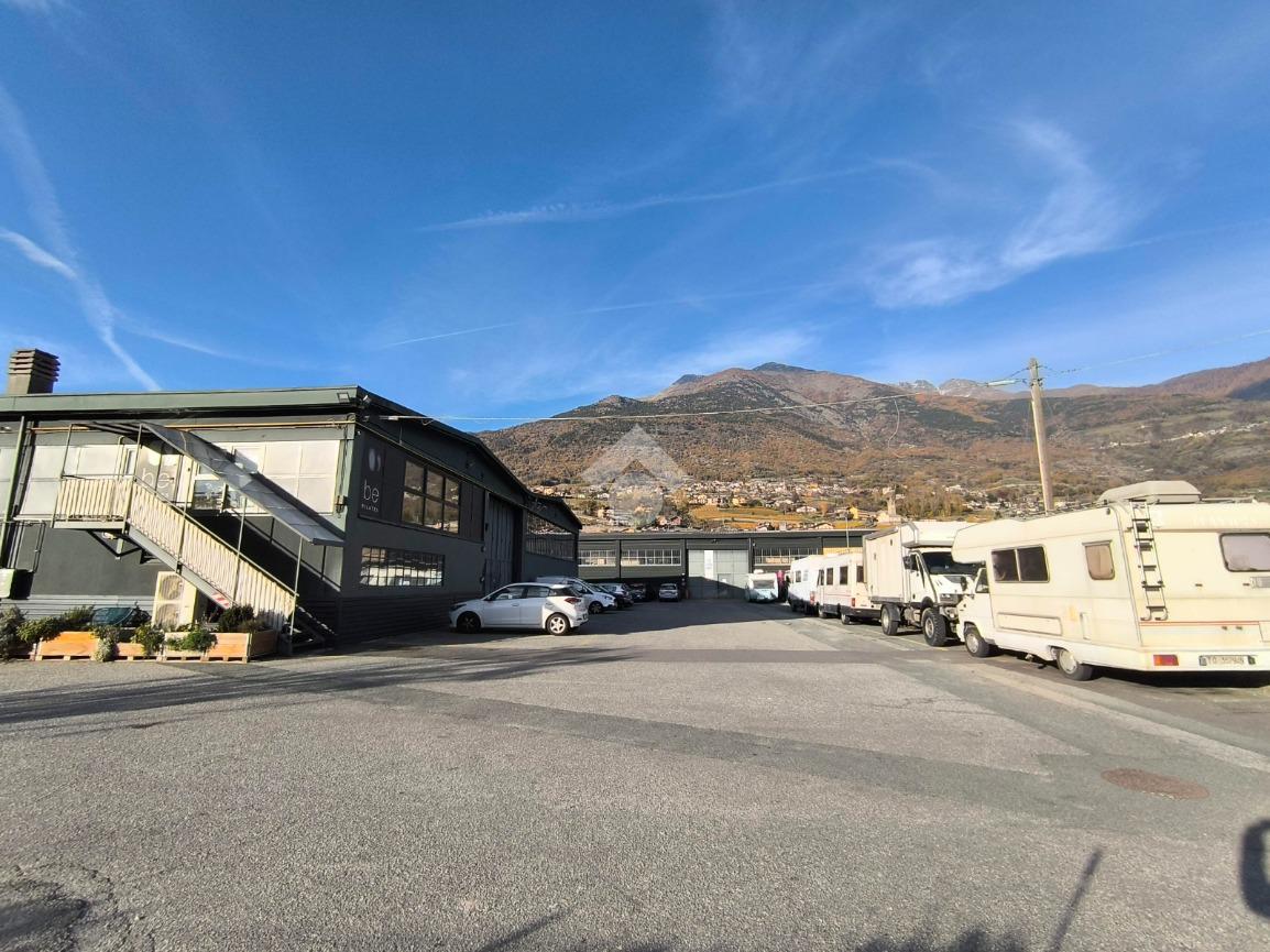 Saint Christophe. Nella zona commerciale e artigianale di Saint Christophe, capannone di circa 450,00 mq con comodo accesso carraio. All'interno dispone di un ufficio, un locale ad uso archivio ed un servizio igienico.