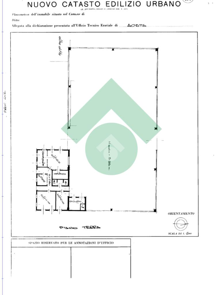 Saint Christophe, Località Grand Chemin. Nella zona commerciale e artigianale di Saint Christophe, in posizione comoda rispetto alle principali arterie autostradali e con una buona viabilità dei mezzi pesanti, capannone indipendente di circa 970,00 mq con un ampia area esterna recintata di circa 3.900,00 mq ed annessa villa di circa 250,00 mq.