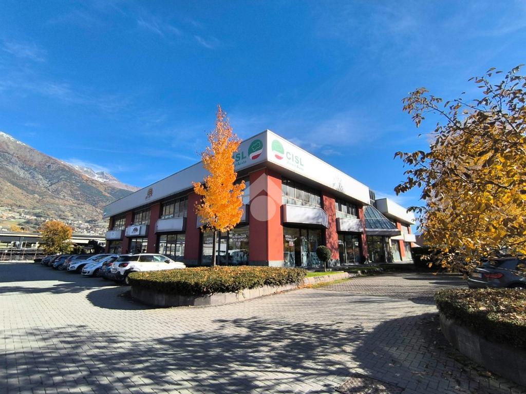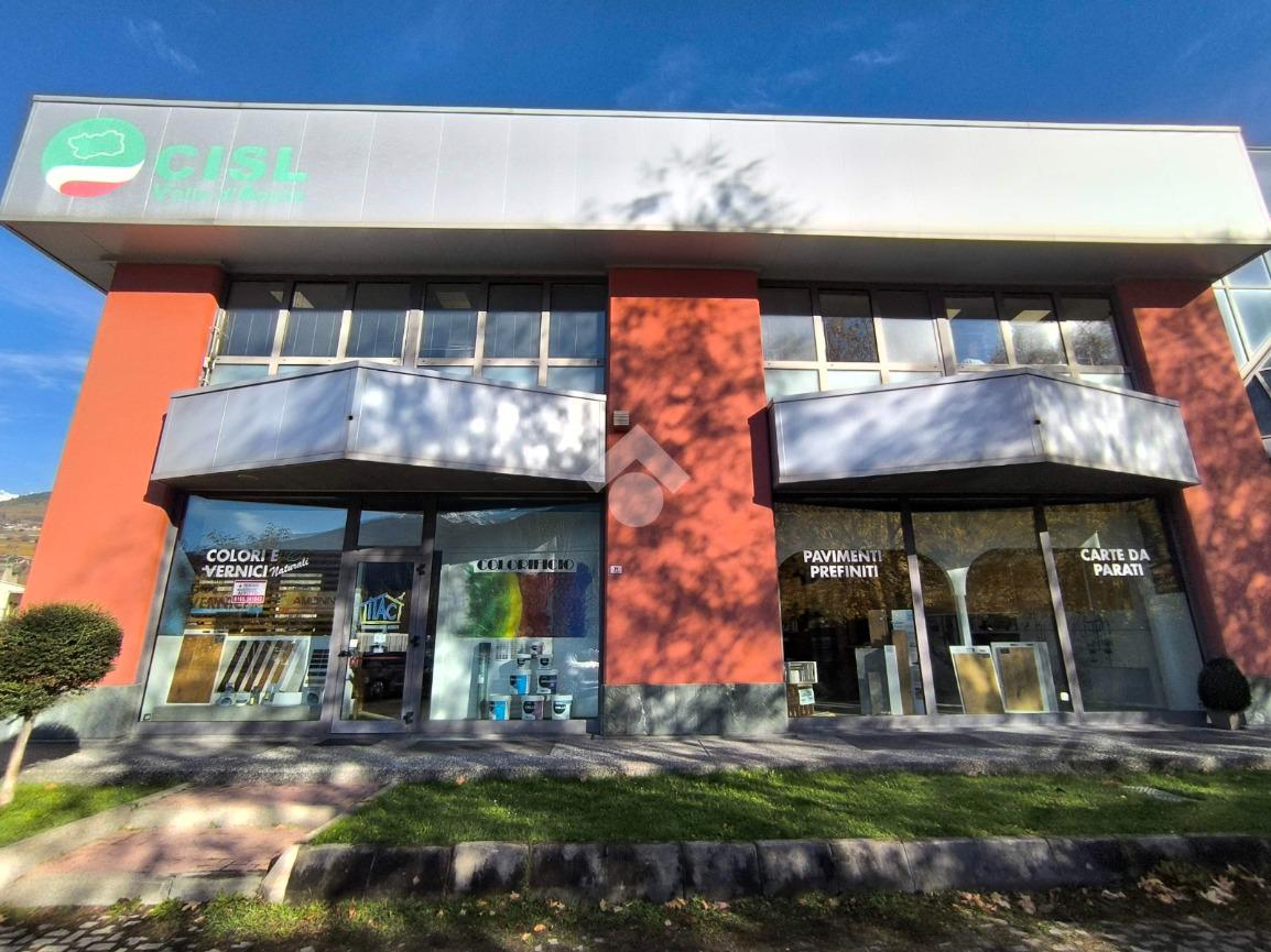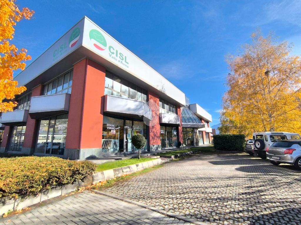 Saint Christophe, Località Croix Noire. Nella zona commerciale e direzionale di Saint Christophe, ed in zona di forte passaggio veicolare e pedonale, negozio angolare al piano terra di circa 150,00 mq con tre vetrine fronte strada che donano una buona visibilità e luminosità agli spazi interni grazie alla sua esposizione a sud.