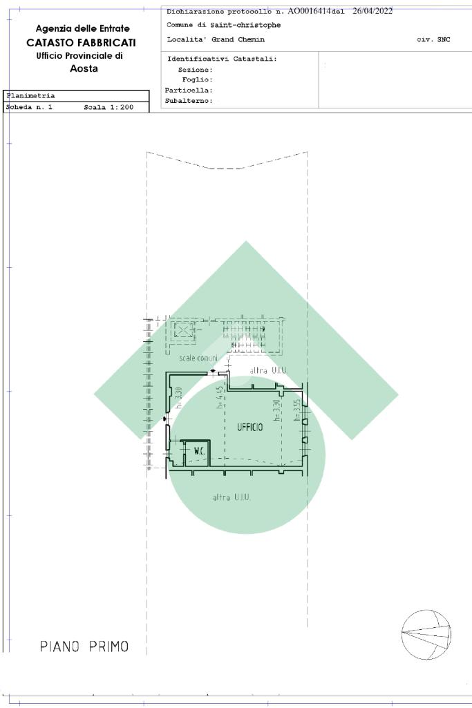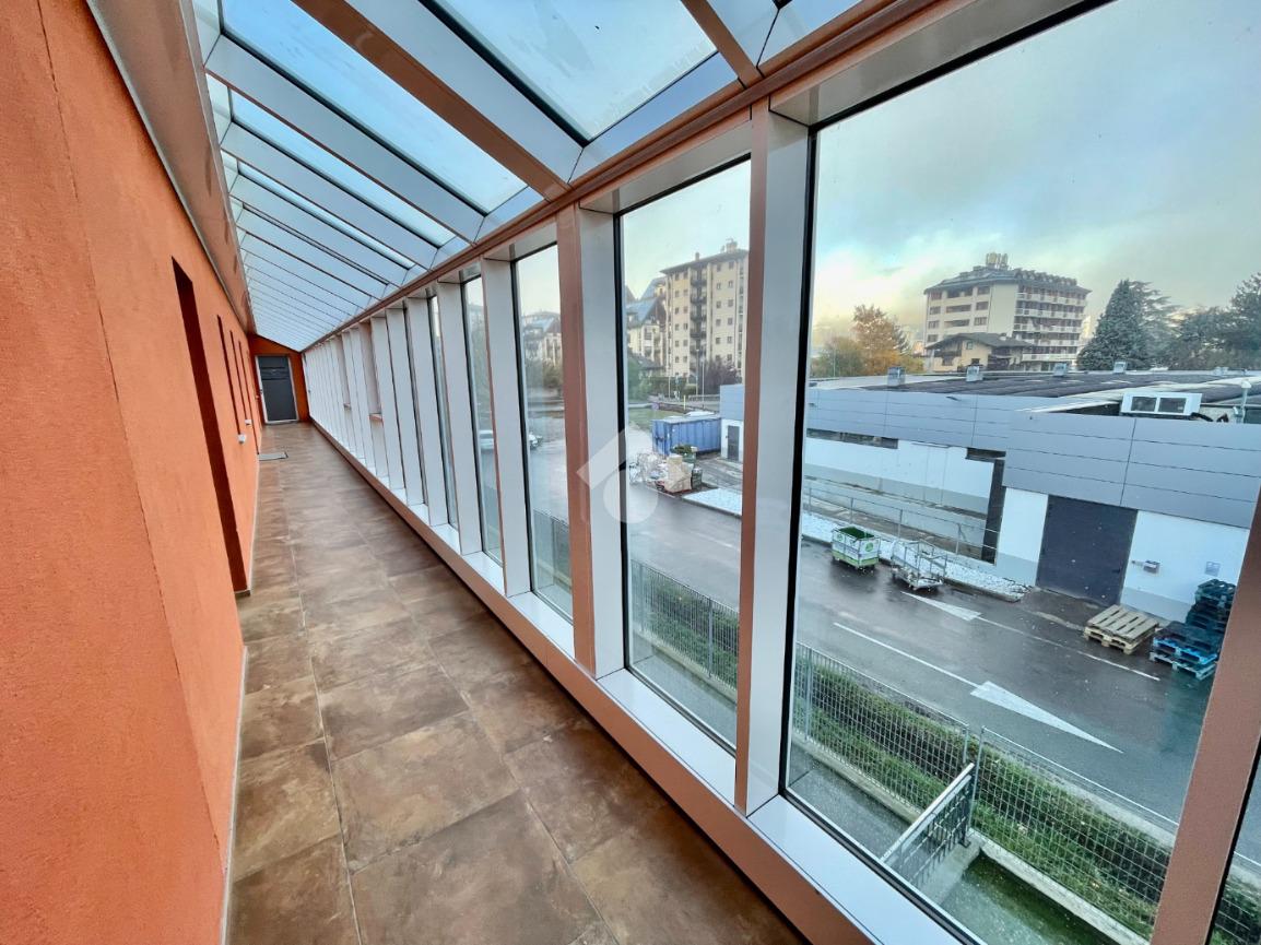 Saint Christophe. All'interno del centro direzionale di Saint Christophe ufficio di nuova costruzione con rifiniture di pregio, sito al primo piano con ascensore e privo di barriere architettoniche. Internamente ha una metratura di circa 80,00 mq ed è disposto su un unico livello con un ingresso su una sala d'attesa, due locali studio ed un servizio igienico con antibagno, il tutto caratterizzato da un soffitto a volta in legno. Gli spazi sono stati suddivisi con delle pareti in cartongesso e quindi vi è la possibilità di cambiare la disposizione interna in base alle proprie esigenze. L'immobile è cablato ed è dotato di pavimento flottante che consente la sopraelevazione del piano di calpestio creando un facile passaggio degli impianti tecnici. Il riscaldamento è semiautonomo con termoconvettori. Possibilità di acquisto.